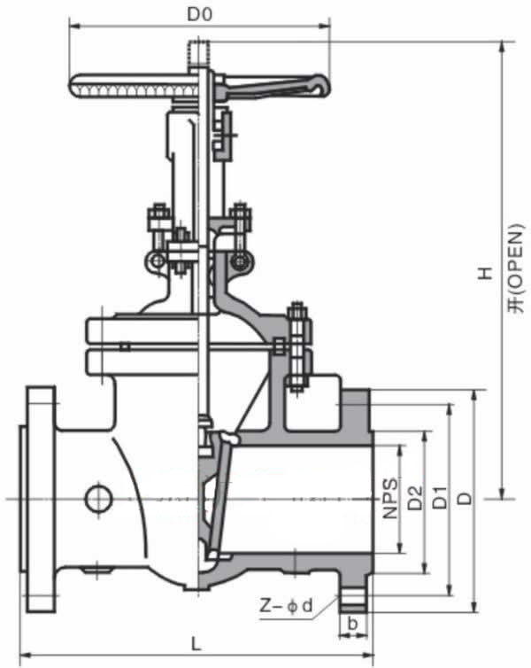 Z40H美標閘閥主要外形和連接尺寸|